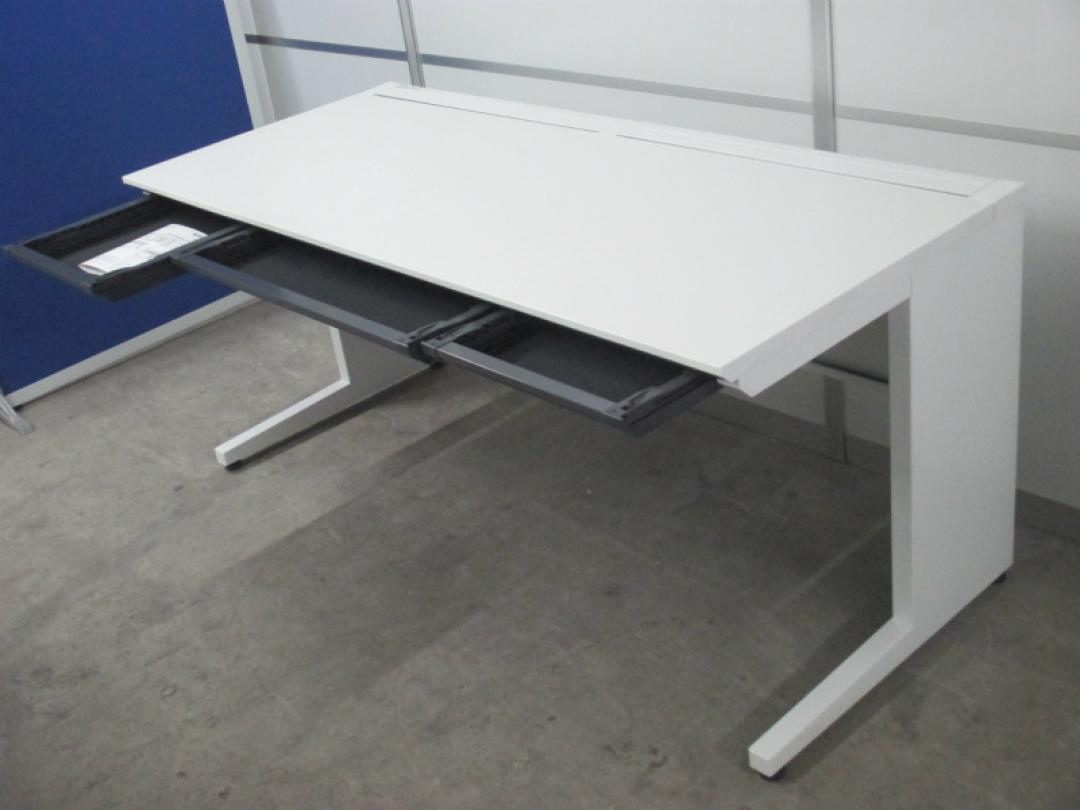 【新古品!2台入荷!】幅1600mm 平デスク センター引出し付きタイプ ホワイト【オフィス家具】- 川崎店