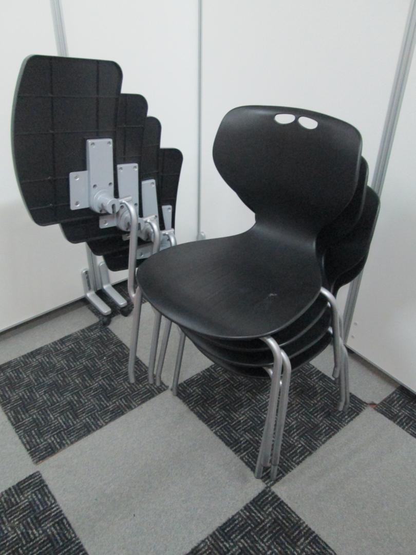 【限定4脚】希少なメモ台付のスタッキングチェアです。汚れが目立ちにくいブラック- 名古屋本店