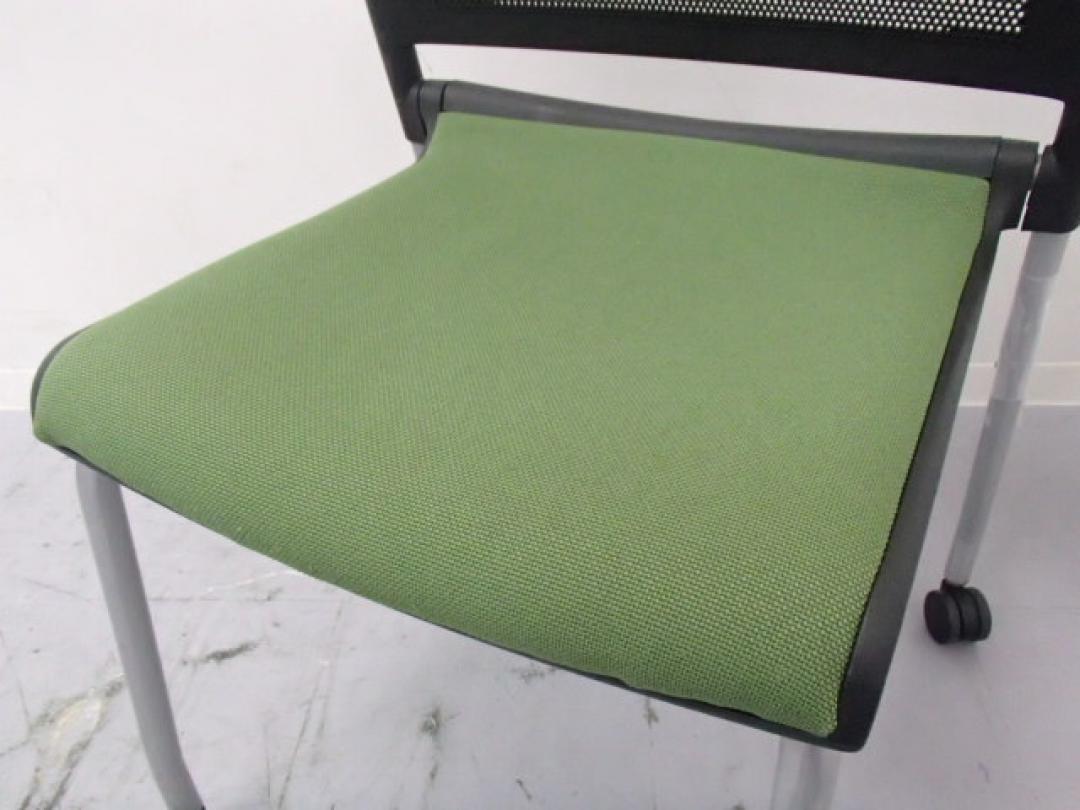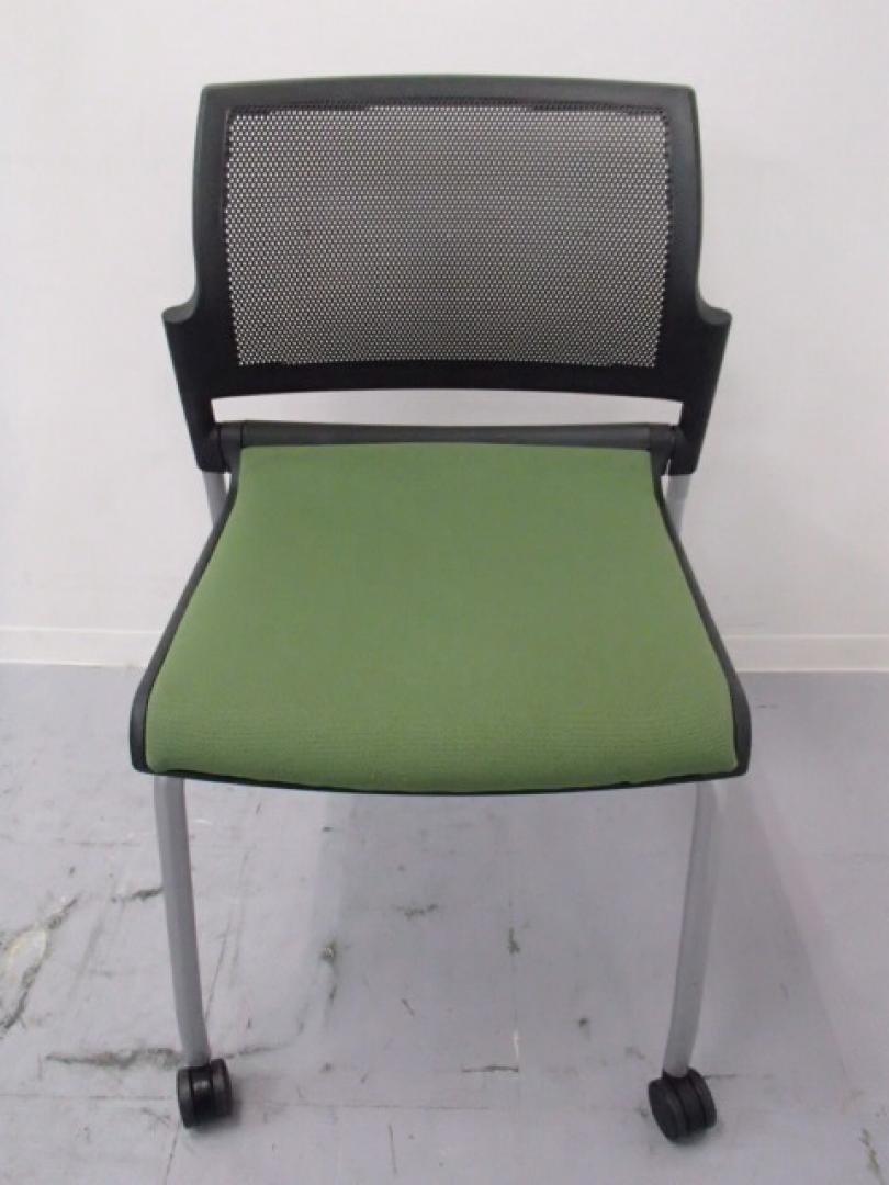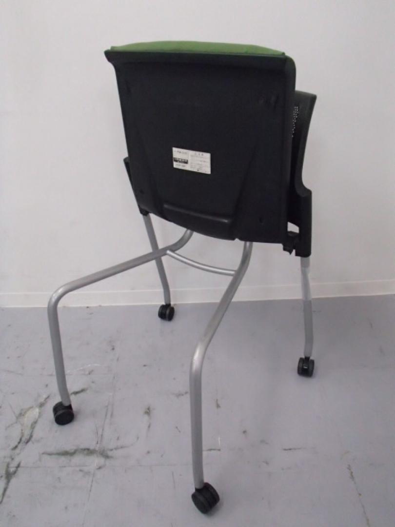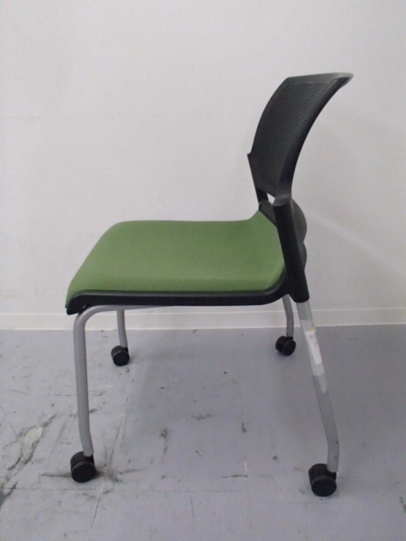 【ミーティングチェア】|グリーン色|座を持ち上げるだけでスタッキングでき、キャスター付なので設置・収納が楽にできます。- 大阪・堺店