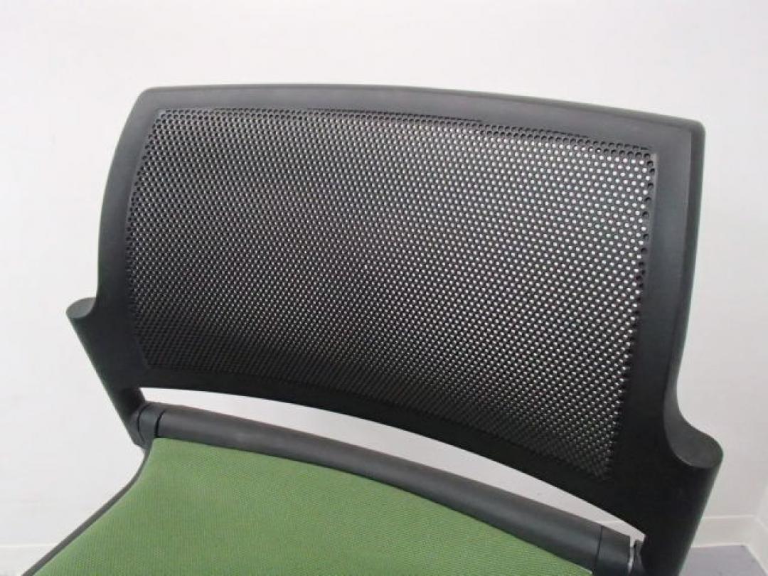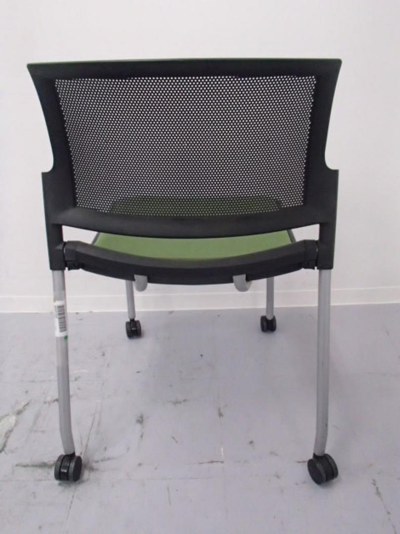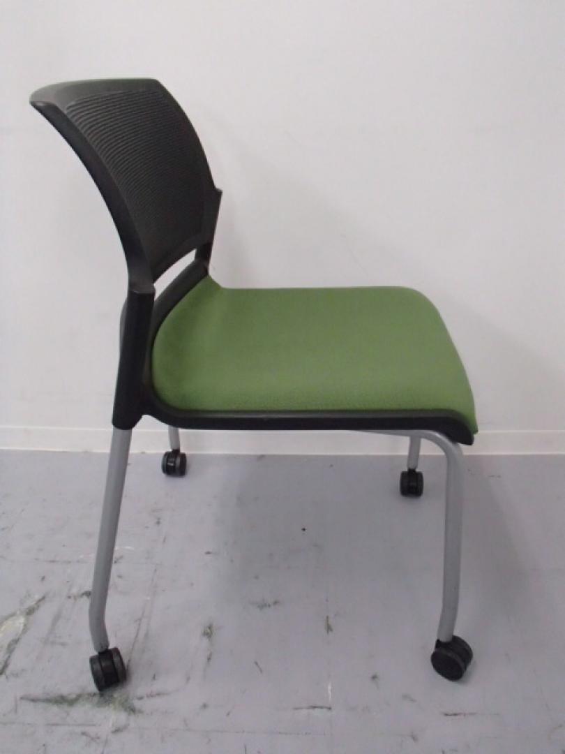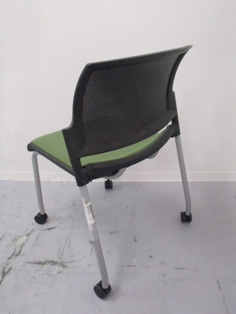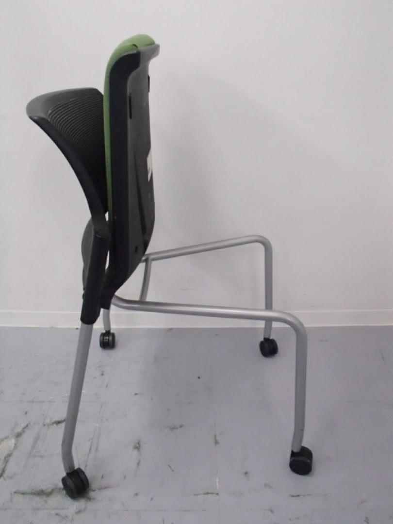 【ミーティングチェア】|グリーン色|座を持ち上げるだけでスタッキングでき、キャスター付なので設置・収納が楽にできます。- 大阪・堺店