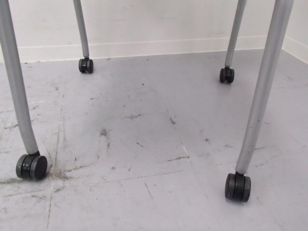 座を持ち上げるだけでスタッキングでき、キャスター付なので設置・収納が楽にできます。