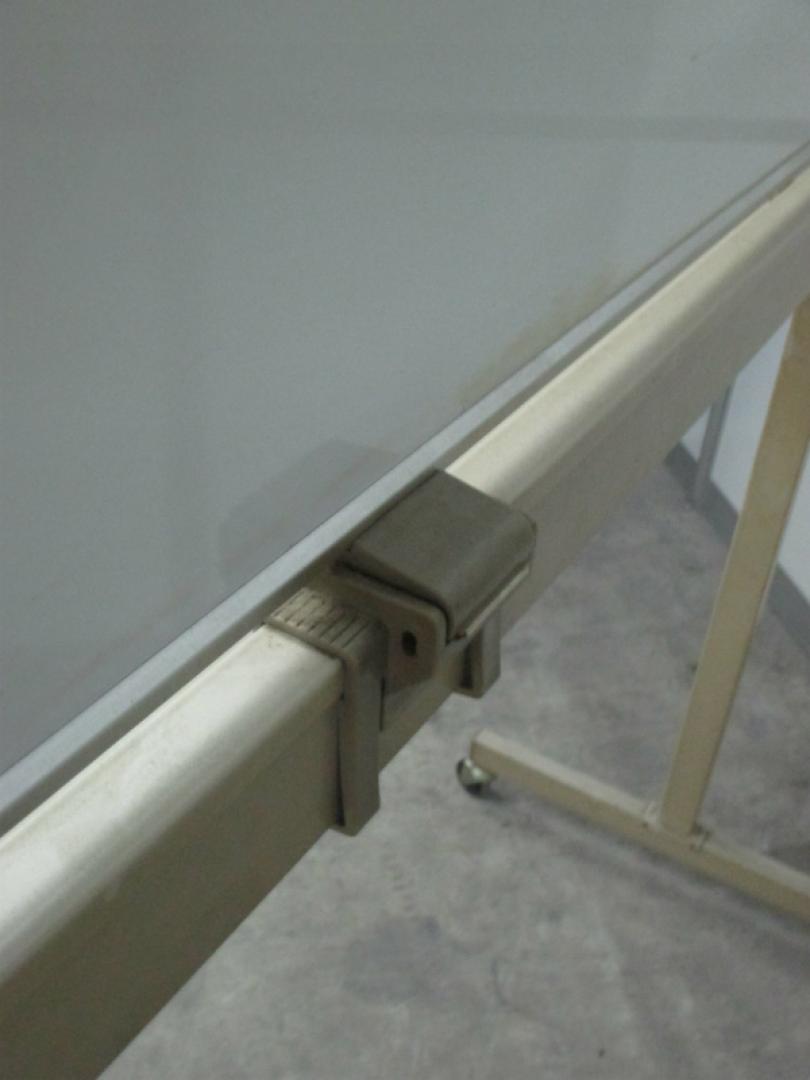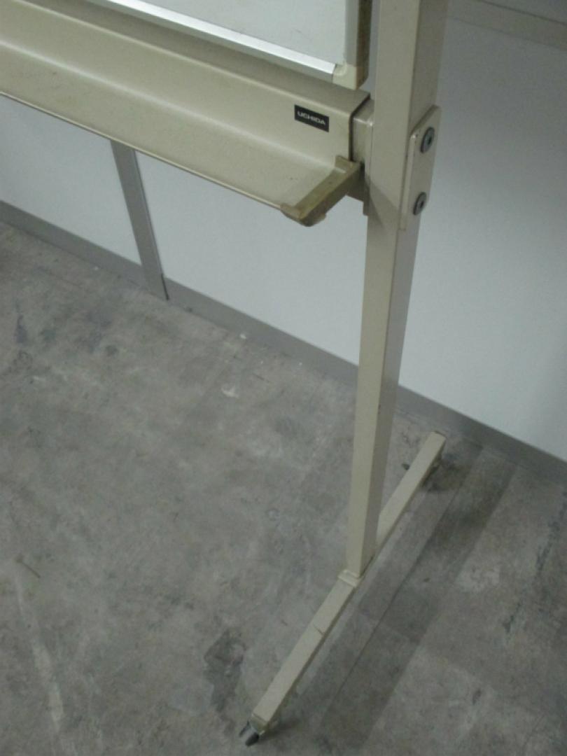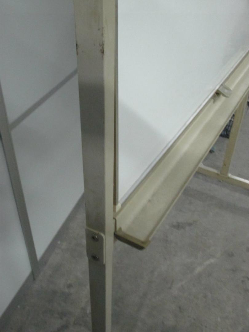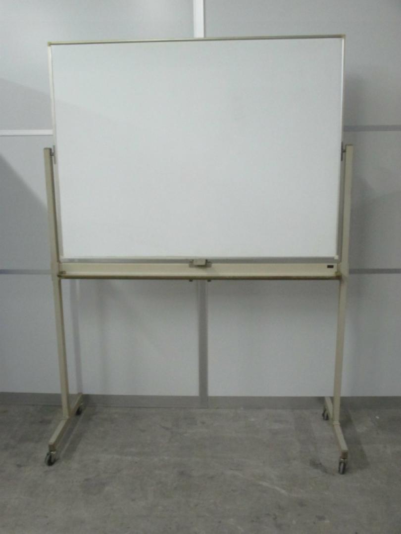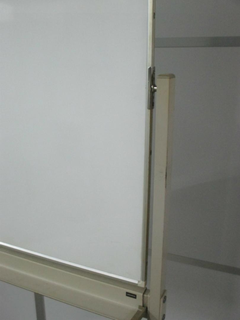 【書きやすく消しやすいホーロー製】脚付き両面ホワイトボード 盤面幅1200mm 高さ900mm 支柱に日焼けあります【中古オフィス家具】- 川崎店