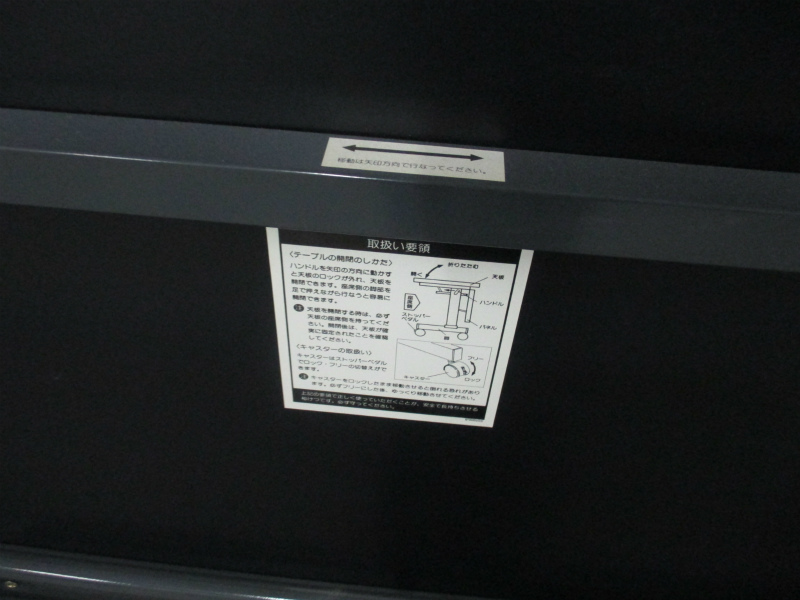- 一部不具合あり天板歪み、アジャスター無し、キャスター使用不可ようなそのテーブルの本来の効用を果たすための機能以外の一部が使用不可な状態。(例、キャスターロッ ク機能使用不可、棚板無し等がある。)