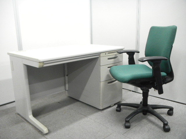【チェア・デスク】【セット商品】~オカムラ製の片袖机と肘付きチェアのセット商品~- 在庫数