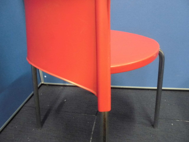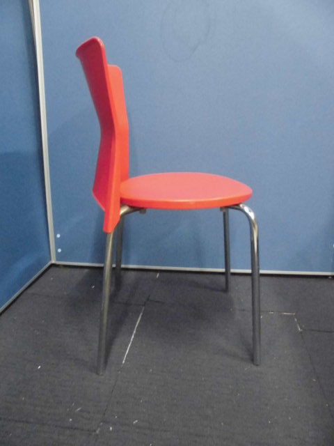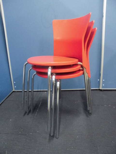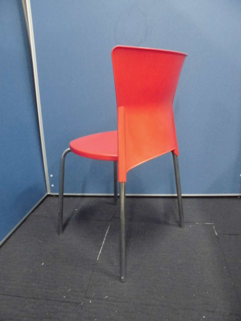 簡易スタッキングチェア|レッド|プラ素材のため拭き掃除できます!- 立川・八王子店