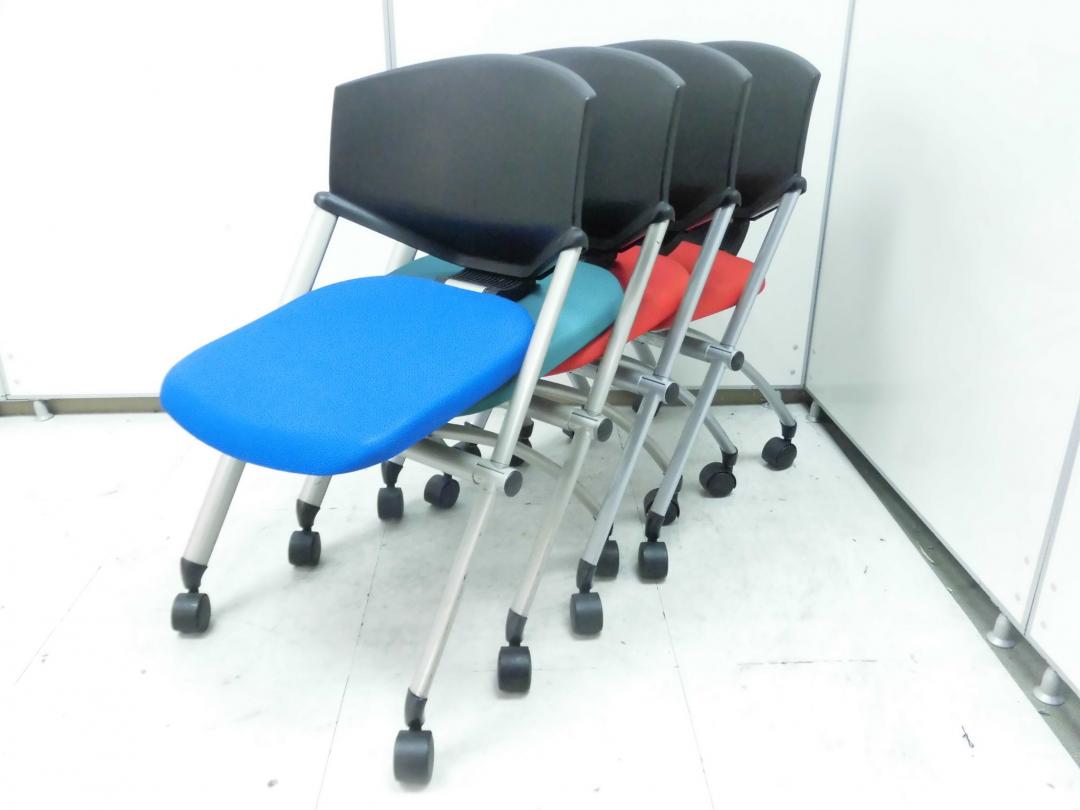 【1セット限定】コクヨ製ネスティングチェア4脚セット カラフルな色合いがおしゃれ!- 京都東寺店