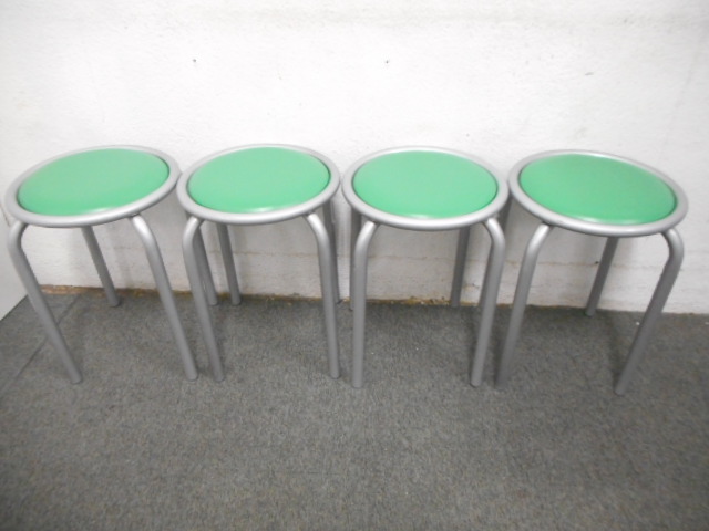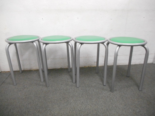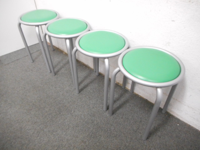 【セット商品】■丸イス4脚セット グリーン【掃除しやすいビニールシート】 ■コクヨ(KOKUYO)CK-742G【中古オフィス家具・新宿】スツール- 在庫数