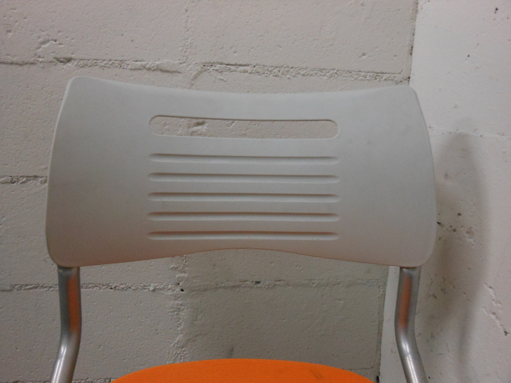 - かなり強い濃い黄ばみ・変色が商品全体にある。(例、座面・背もたれ、脚部等にある。)