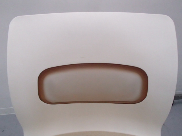- かなり強い濃い黄ばみ・変色が商品全体にある。(例、座面・背もたれ、脚部等にある。)
