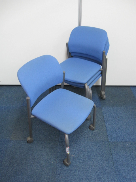 【状態○】会議用チェア キャスター付き 明るめブルー 重ねて収納もOK! ※中古 ミーティングチェア スタックチェア- 品川・三田店