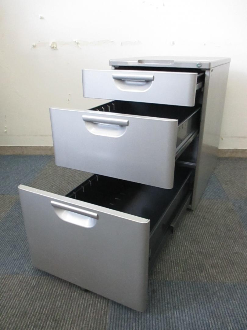 【スタイリッシュなシルバー色】イトーキ製 3段ワゴン【8台揃います!!】- 千葉店