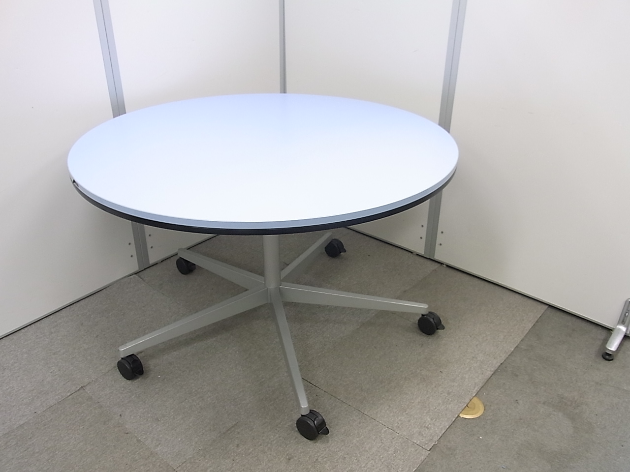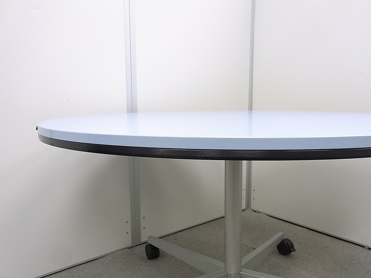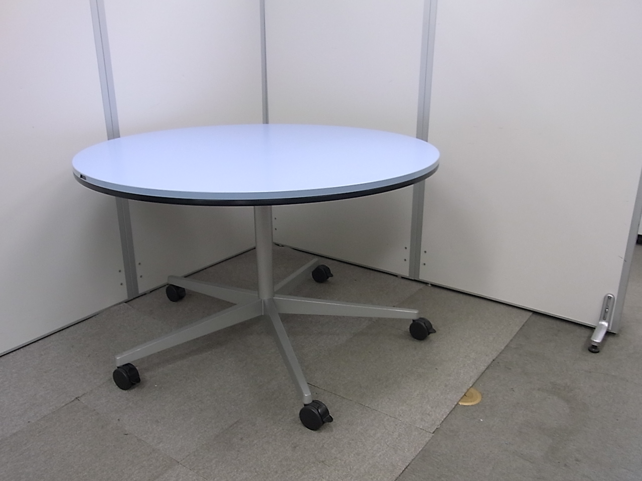 【1台入荷!】オカムラ製 キャスター付き 丸テーブル■1200πのブルー天板 リフレッシュスペースに最適なサイズ!- 在庫数