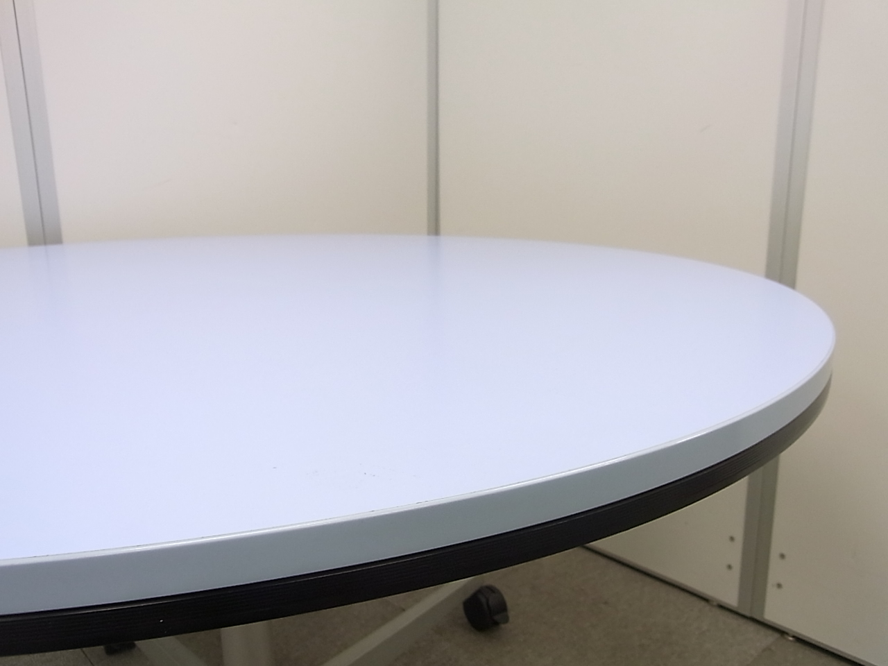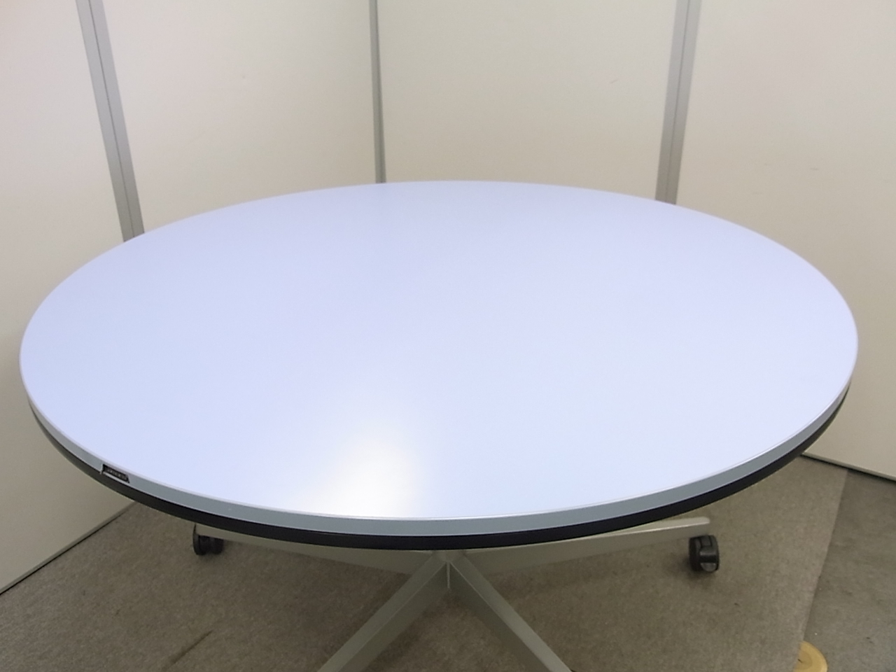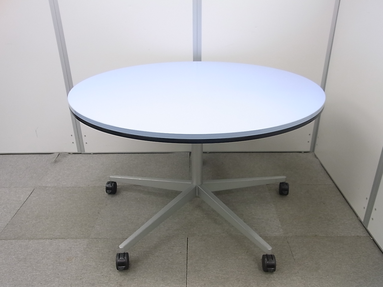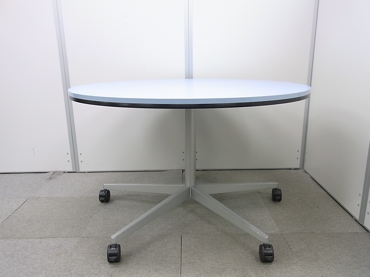 【1台入荷!】オカムラ製 キャスター付き 丸テーブル■1200πのブルー天板 リフレッシュスペースに最適なサイズ!- 在庫数