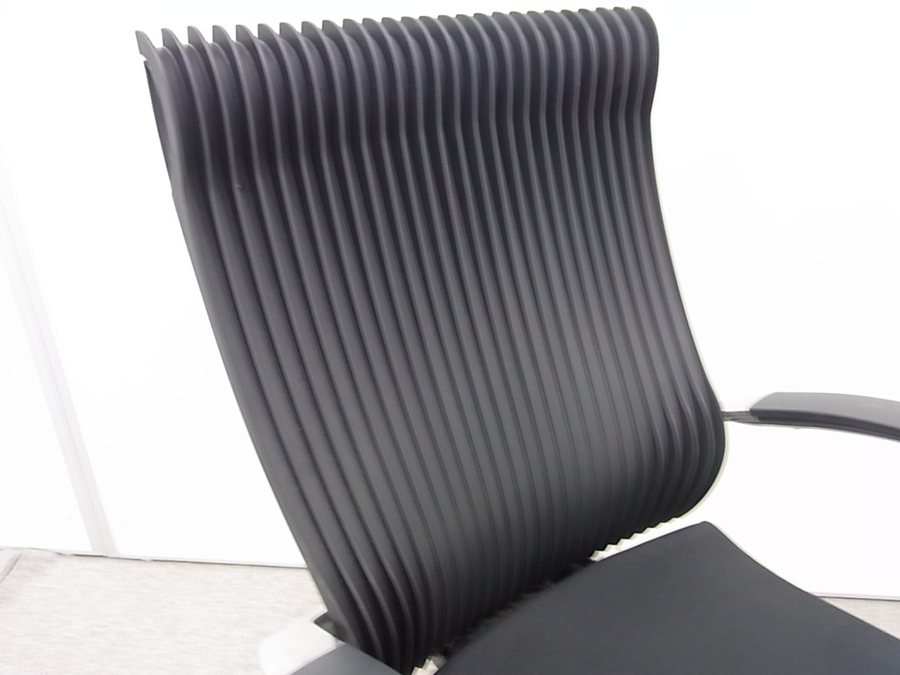 見た目は少し硬そうに見えるエラストマー素材ですが、座ってみると程よいしなり具合のやわらかな座り心地で、背中が痛くなるようなことはまるでありません。面ではなく線で支えることで、背面の通気性の良さは抜群です。