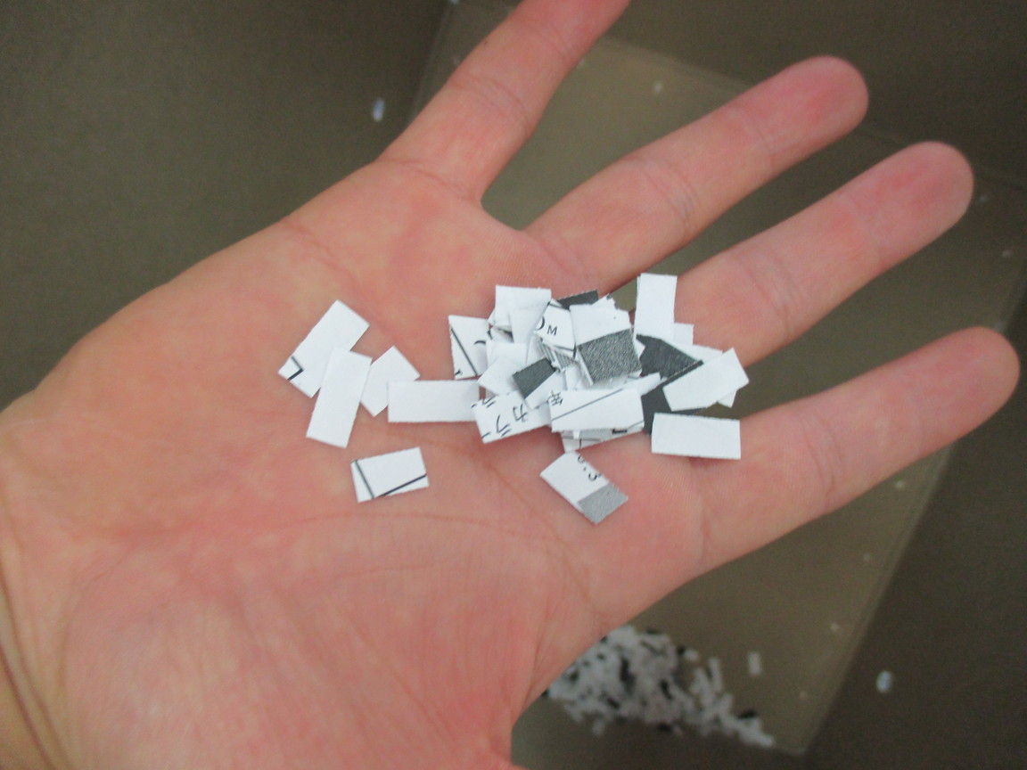 縦切り&横切りによる小さな細断面積で、機密保持を徹底。