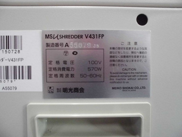 【中古】 MS-V431FP 明光商会 シュレッダー 136865