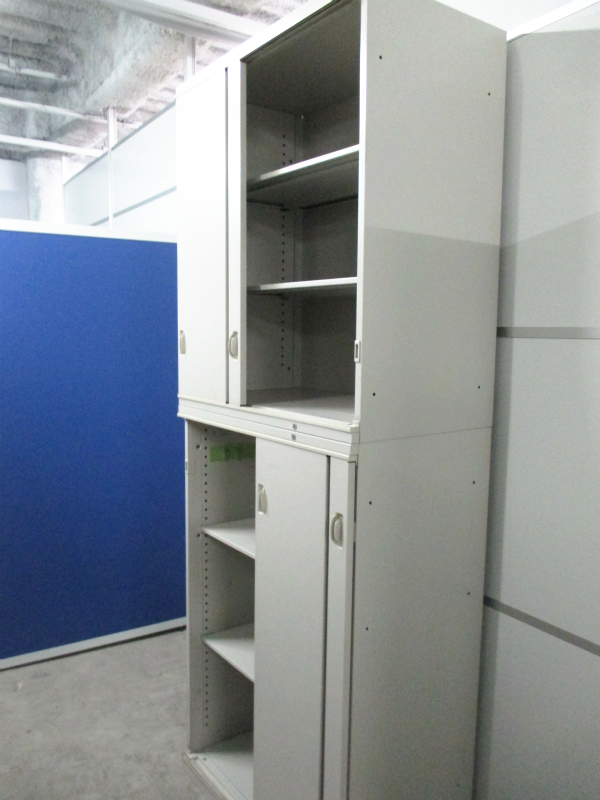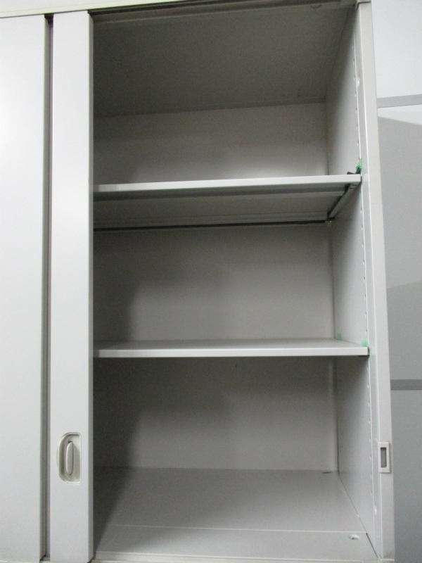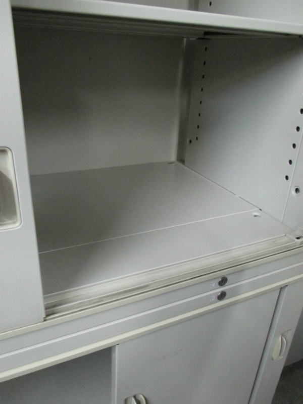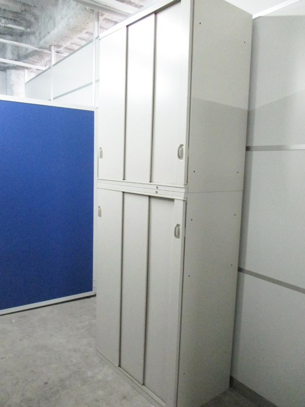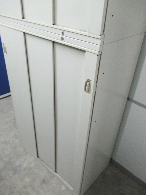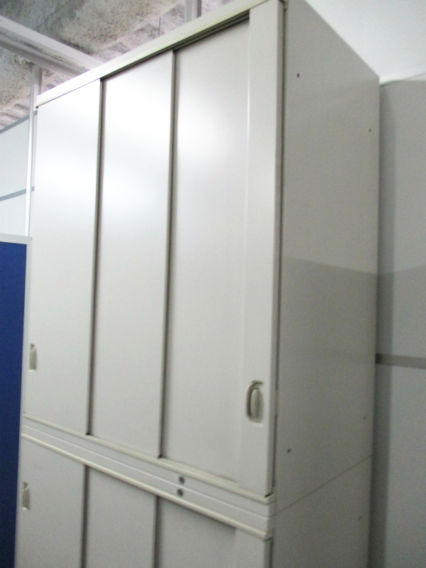 【2セット入荷】引き違い+引き違いの書庫セット!横幅800mmなので、省スペースに!【レア】【3枚引き戸】【中古オフィス家具】- 川崎店