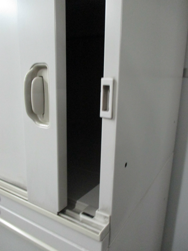 - 一部不具合ありそ引出の開閉不可、施錠不可、棚板無しといったの書庫の本来の効用を果たすための機能以外の一部が使用不可(例、扉、引出の開閉がしづらいなどがある。 )