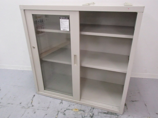 省スペースに便利なガラス引き戸タイプのキャビネットです。