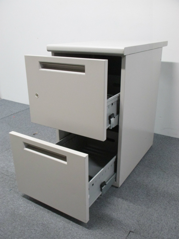 【1台入荷!状態良好】A4 B4 収納可能 2段脇机 デスクと同じ高さのサイドキャビネット【中古オフィス家具 事務机】- 川崎店