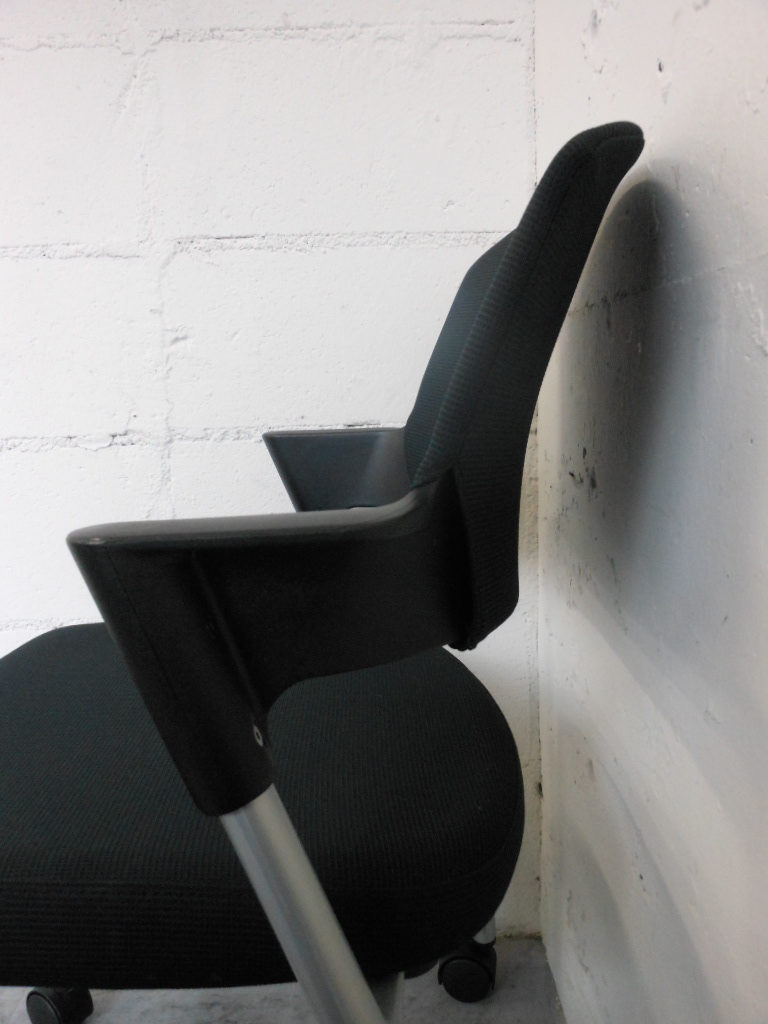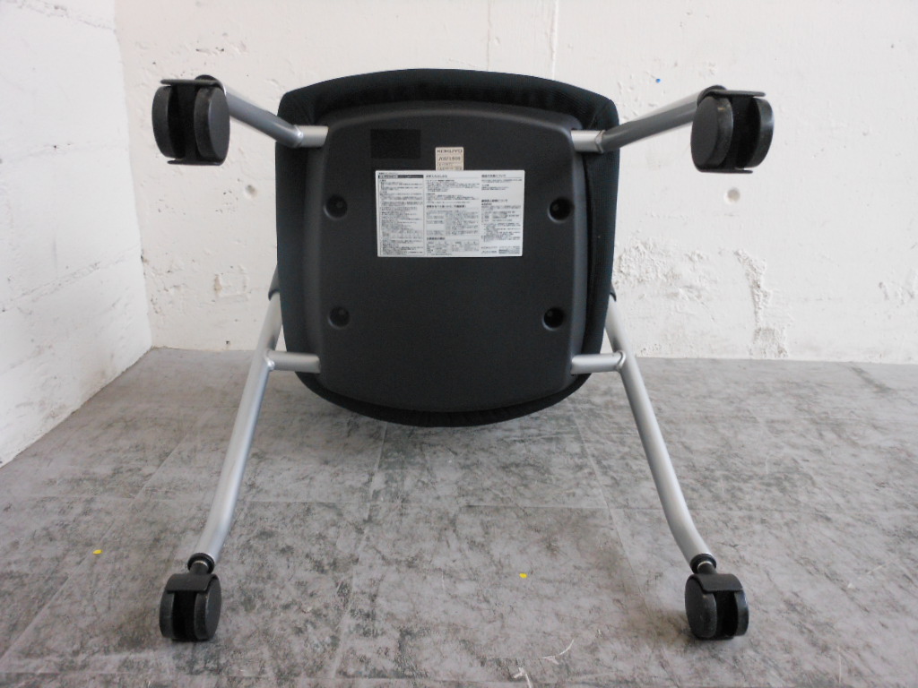 【シンプルスマートなスタッキングチェア!分厚いクッションで長時間でも快適な座り心地!】■コクヨ(KOKUYO)製 プロッティシリーズ スタッキングチェア 肘付ミーティングチェア ■固定肘 ■キャスター付 ■ブラック ■背面樹脂 【弊社使用欄:A01006552】