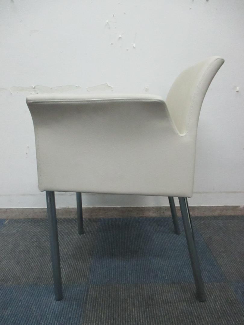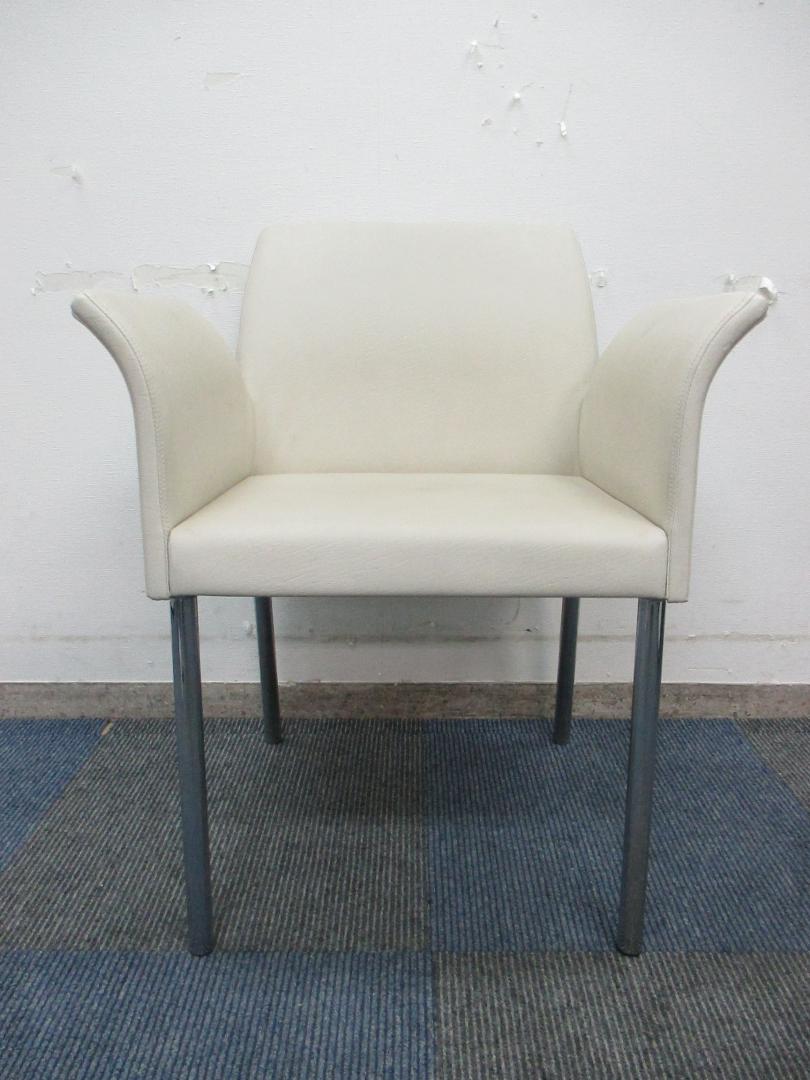 【なんと定価10万以上!!】【コラーゲン入りレザー張り】内田洋行製 ミーティングチェア【4本脚】【ホワイトアイボリー色】- 千葉店