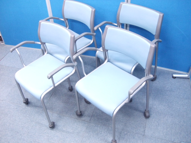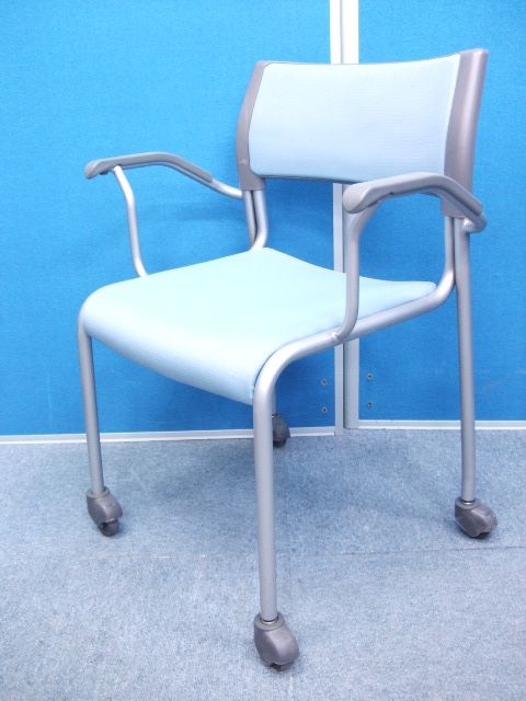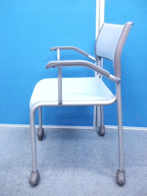 【4脚セット】定番のブルーのチェア【スタッキング、キャスター付き】- 在庫数