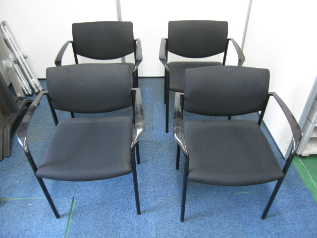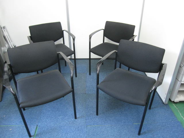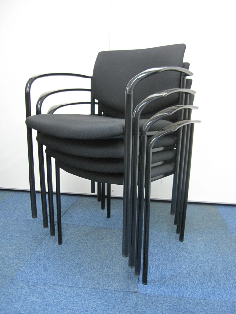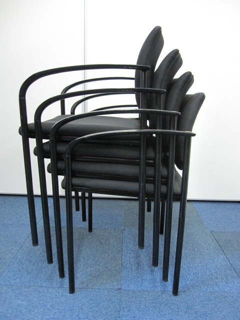 【セット商品】【高級スタックチェア】肘かけ付き スタッキングチェア 4脚×1セット カラー:ブラック【ミーティングチェア】- 品川・三田店