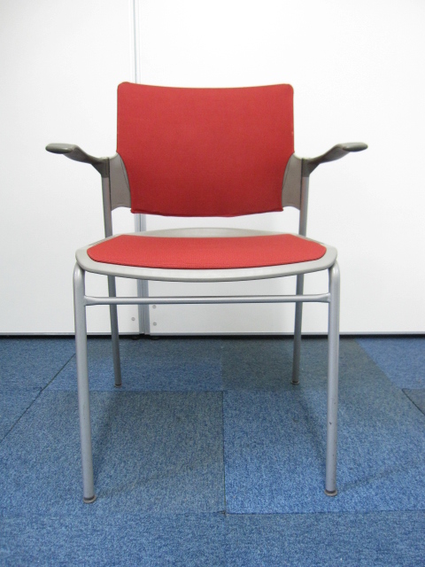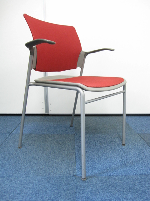 【ミーティングチェア】オカムラ製 フォルマミーティングチェア肘付き カラー:レッド【会議用チェア】- 品川・三田店
