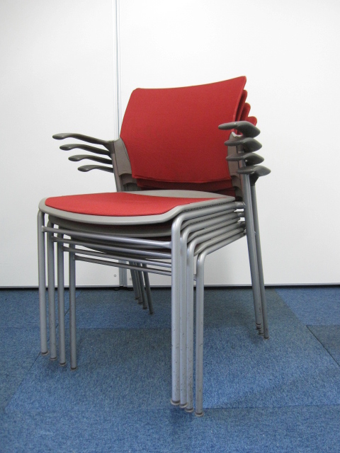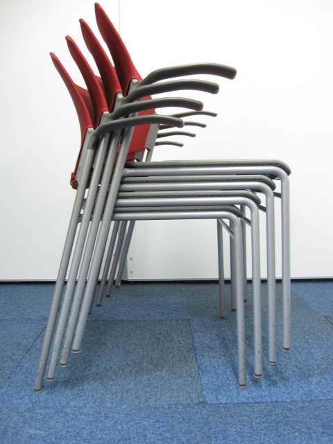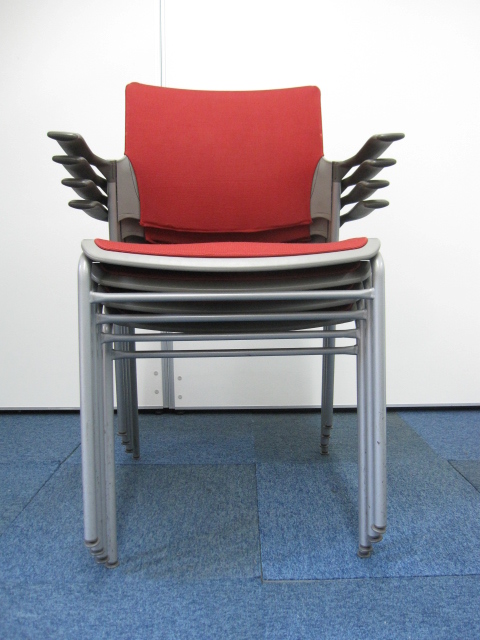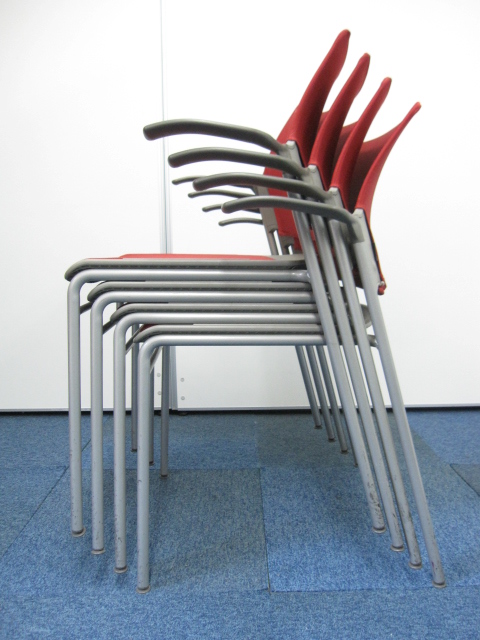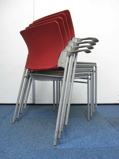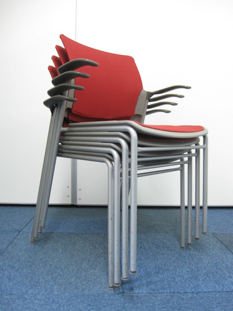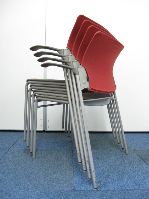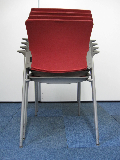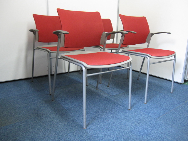 【セット商品】【ミーティングチェア】オカムラ製 フォルマミーティングチェア肘付き 4脚×1セット カラー:レッド【会議用チェア】- 品川・三田店