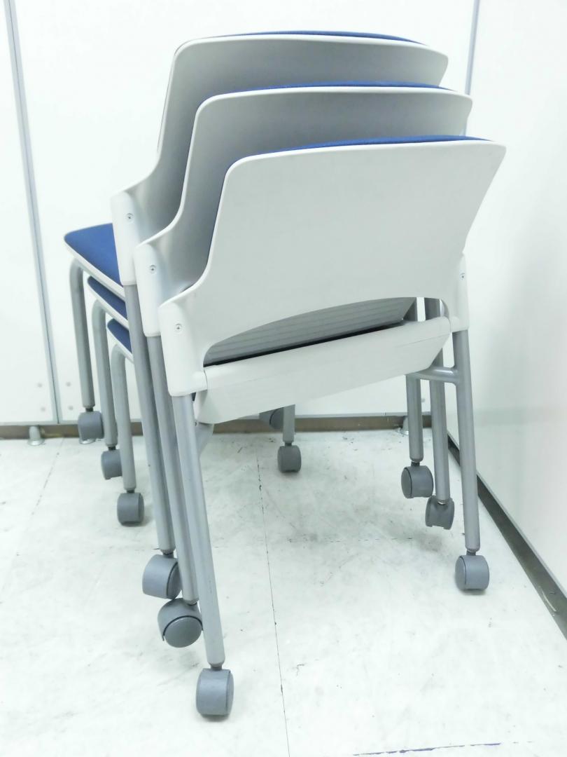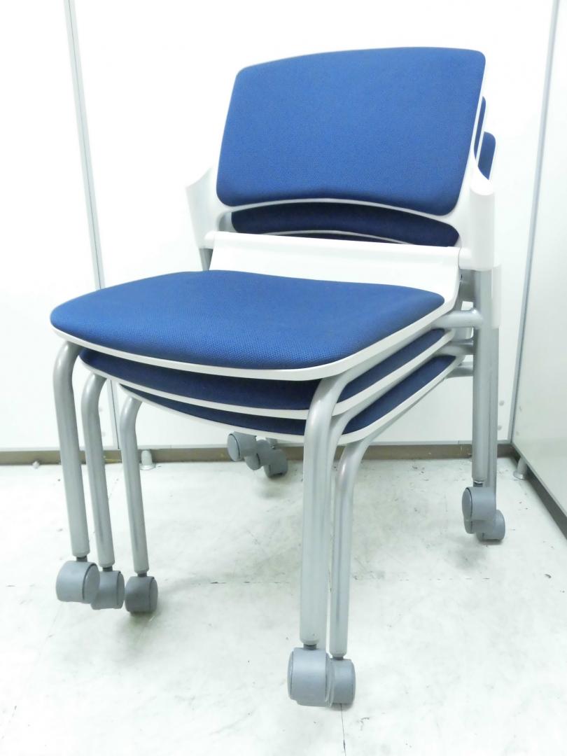 【3脚入荷】キャスター付きで便利 ウチダ製スタッキングチェア 定番のブルー色- 京都東寺店