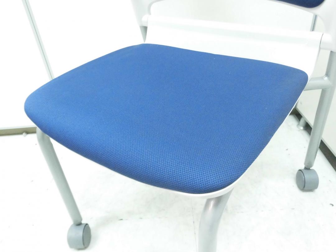 【残り2脚の為、お安く!】【キャスター付きで使いやすい!ミーティングに最適!】■ウチダ(UCHIDA)製 MF-180シリーズ スタッキングチェア ミーティングチェア ■キャスター付き ■レイズンブルー×ホワイトシェル