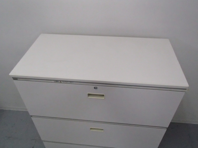 【A4ファイルも沢山収納可能!ホワイトカラーの人気シリーズ3段ラテラル書庫!】/オススメ(おすすめ) /人気商品【弊社使用欄:A01013834】3段ラテラル書庫/ローキャビネット/天板付き/ホワイト/シリンダー錠/ITOKI/THIN LINE■イトーキ/シンライン※取っ手部分日焼あり