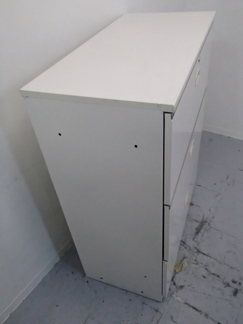 【人気3段ラテラルの小さめサイズ!天板付きのローキャビネット!】■イトーキ(ITOKI)製 シンライン(THIN LIN)シリーズ 3段ラテラル書庫 ローキャビネット ■天板付き ■ホワイト ■シリンダー錠 ※ラッチ日焼け有【AD】