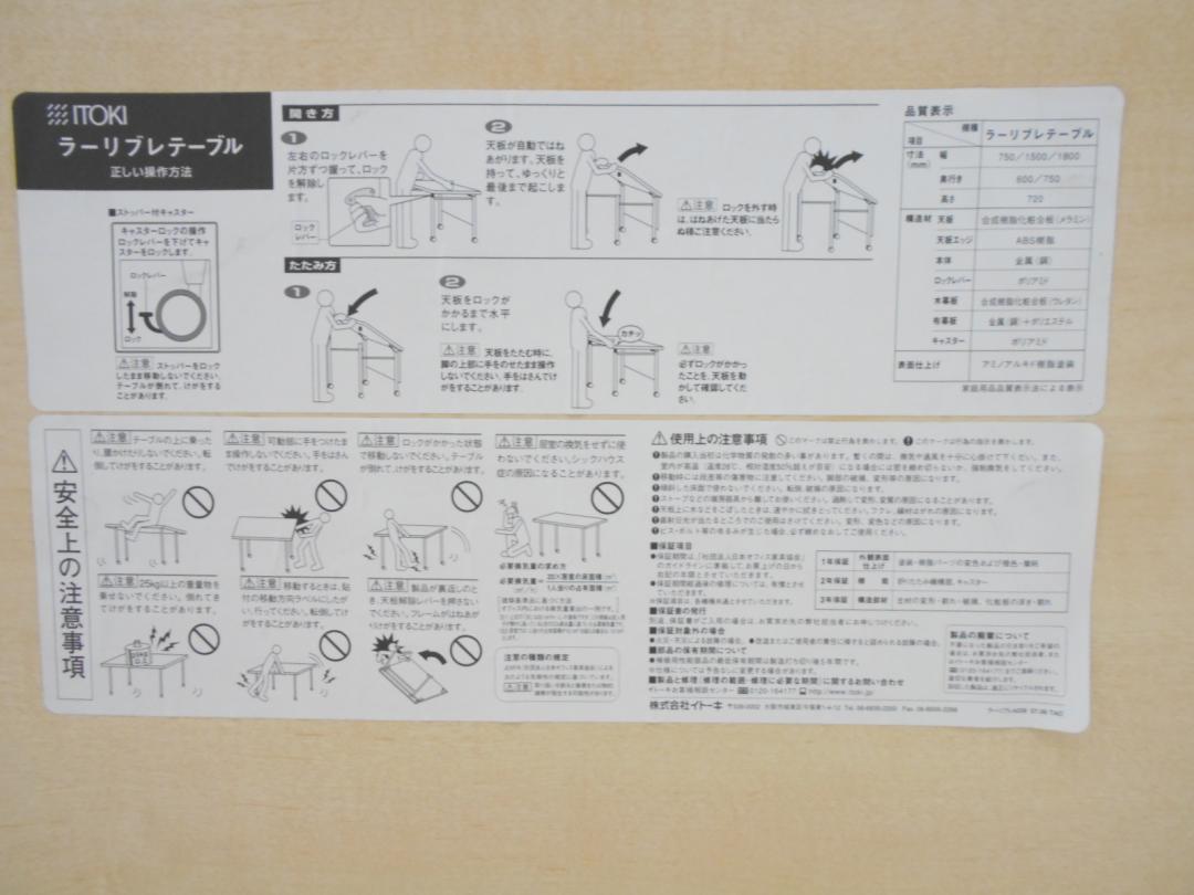 イトーキ製の跳ね上げ式スタッキングテーブルです。