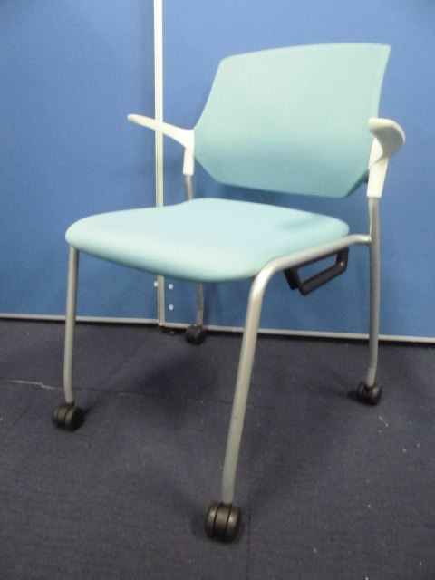 イトーキ|ステンザチェア(stenza)4脚セット|ターコイズブルー/ホワイトシェル|肘付【重ねて収納/スタッキング機能】【セット商品】- 立川・八王子店
