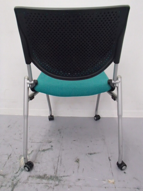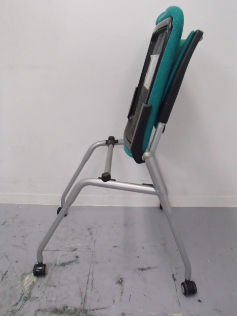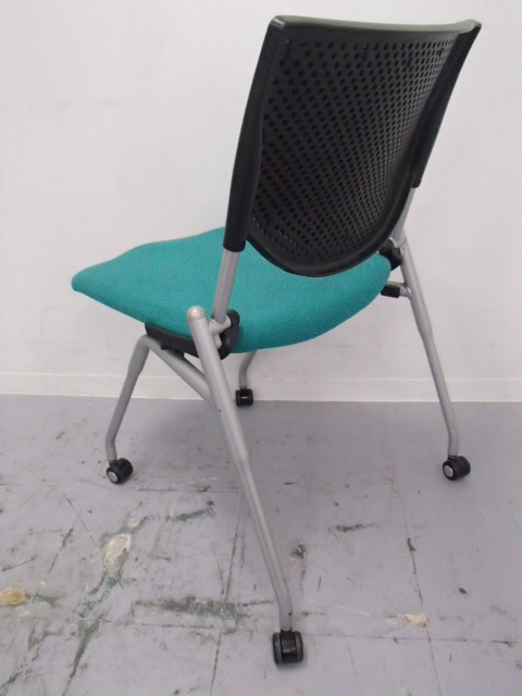 【2脚限定】|ミーティングチェア|グリーン|okamura製|座を跳ね上げてネスティング可能、スペースをとらず、効率よく収納!- 大阪・堺店