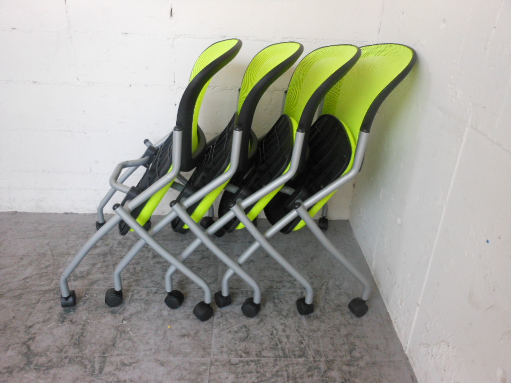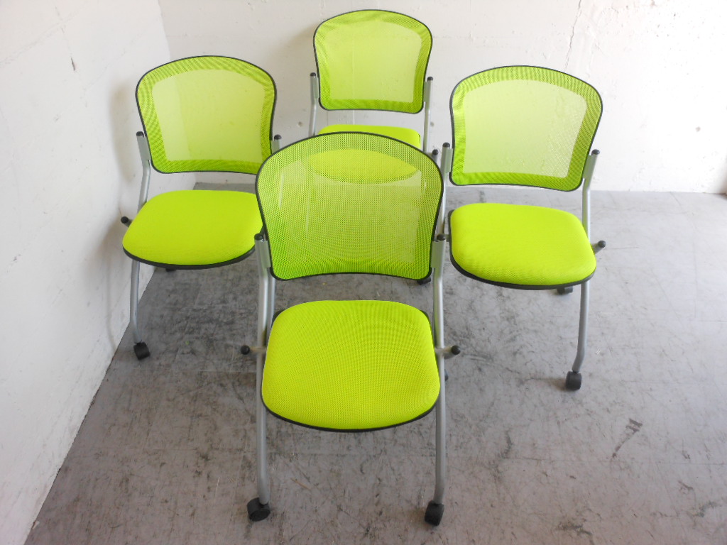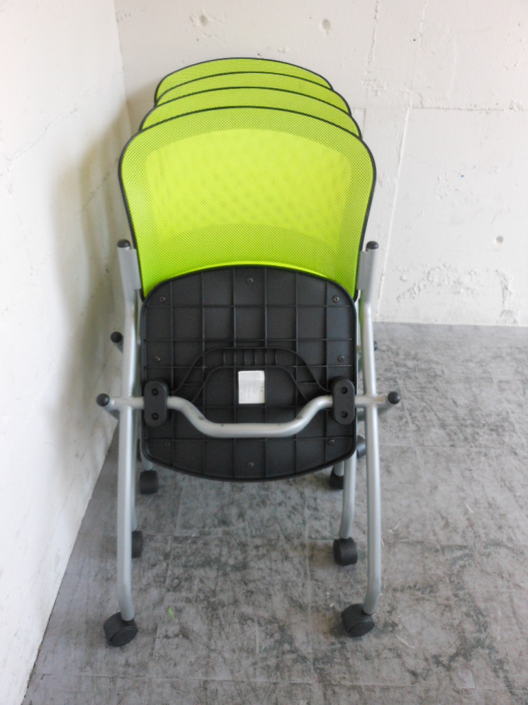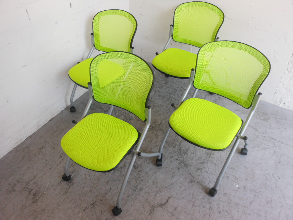 【1組限定・会議用チェアセット】明るいグリーン!4脚セット☆- 神戸・三宮店