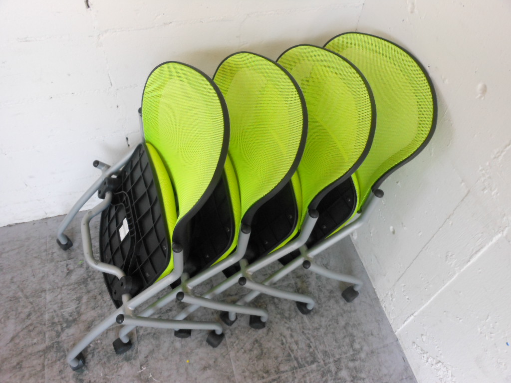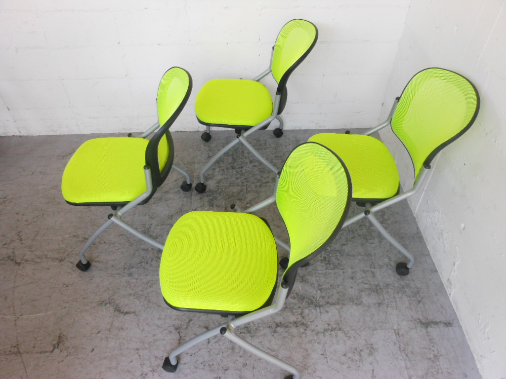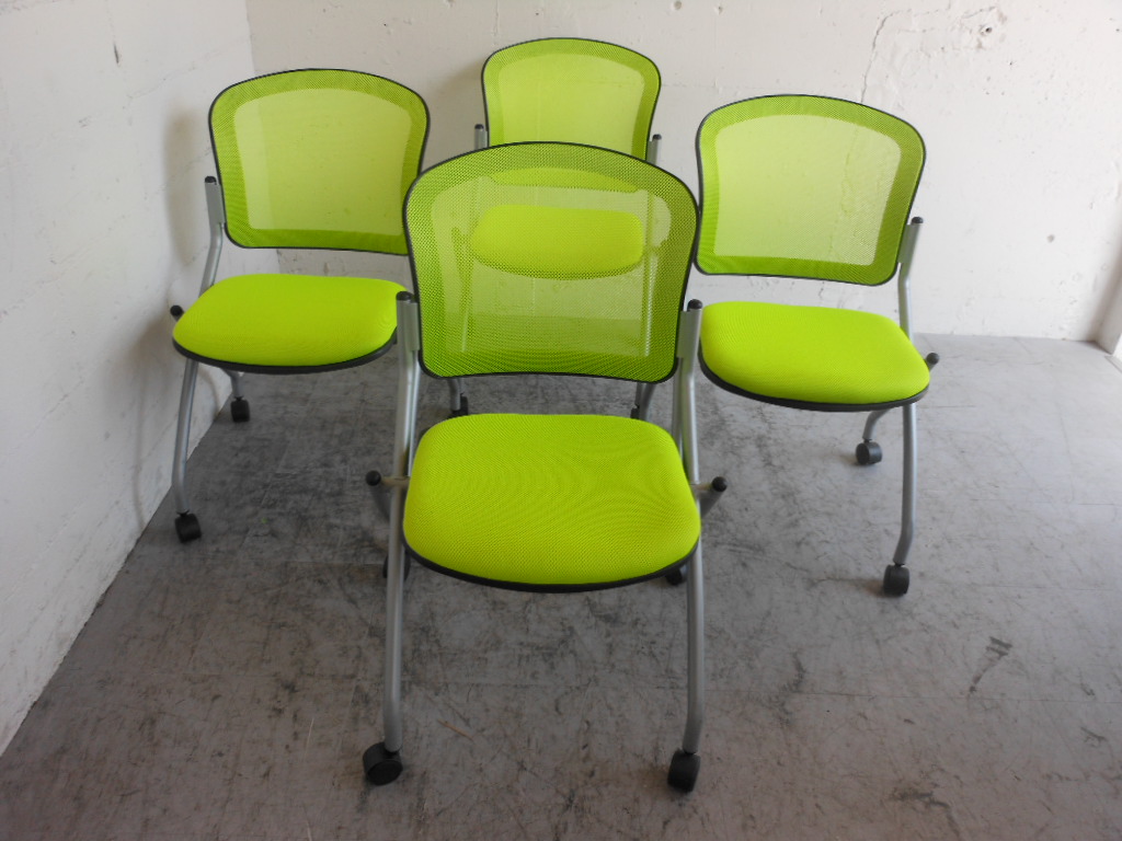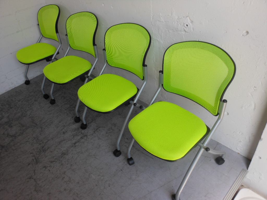 【1組限定・会議用チェアセット】明るいグリーン!4脚セット☆- 神戸・三宮店