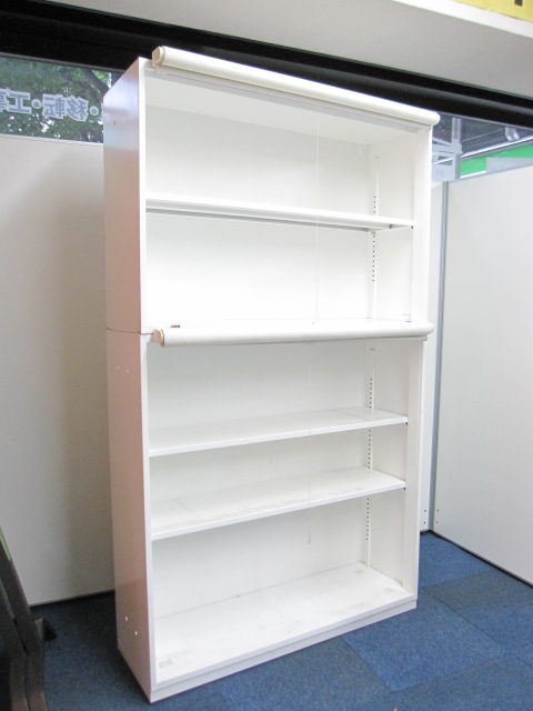 【1点もの】ロールカーテン付き 上下書庫セット オープン×オープン ※中古 キャビネット- 品川・三田店