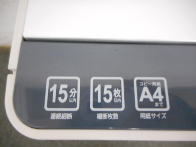 ・定格裁断枚数:A4コピー用紙15枚、CD・DVD・カード1枚、ステープラー針/10号以内