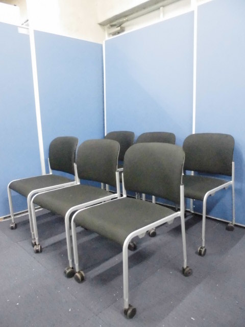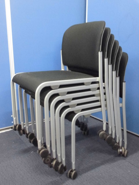 【キャスター付】スタッキングチェア/ミーティング用チェア6脚セット|プラス(PLUS)製|ブラック【セット商品】- 立川・八王子店