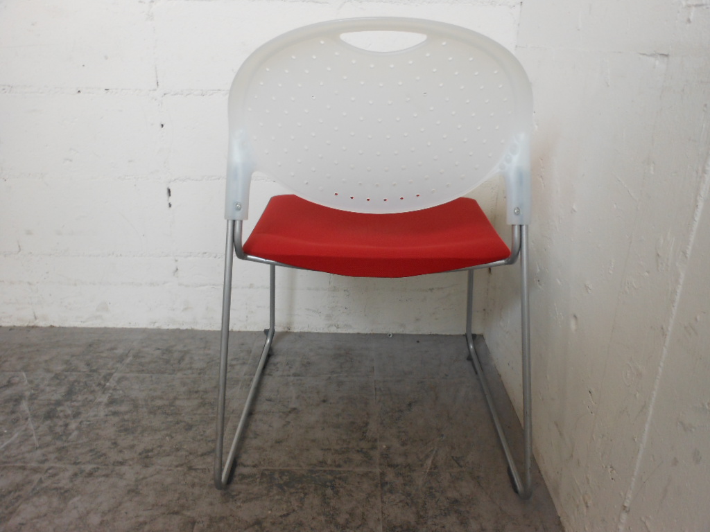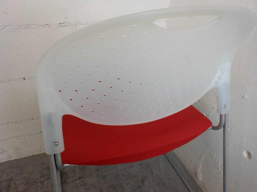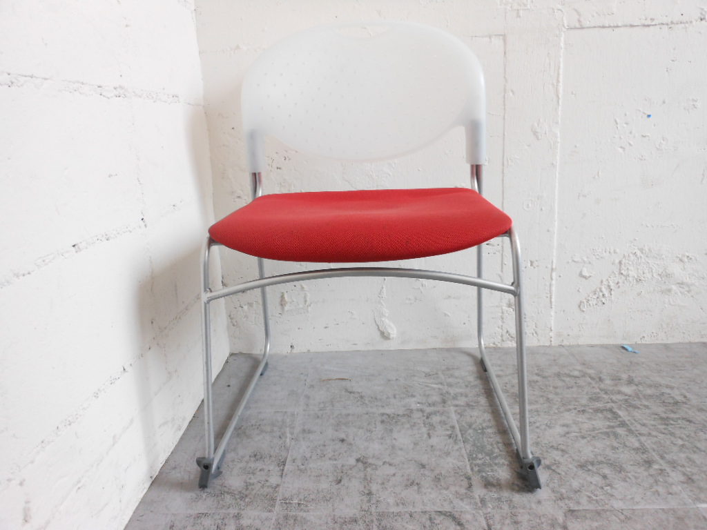 【10脚以上揃います!】~会議用チェア~ クリアホワイト&レッド デザイン・座り心地共に抜群!オフィスにオシャレお☆- 神戸・三宮店