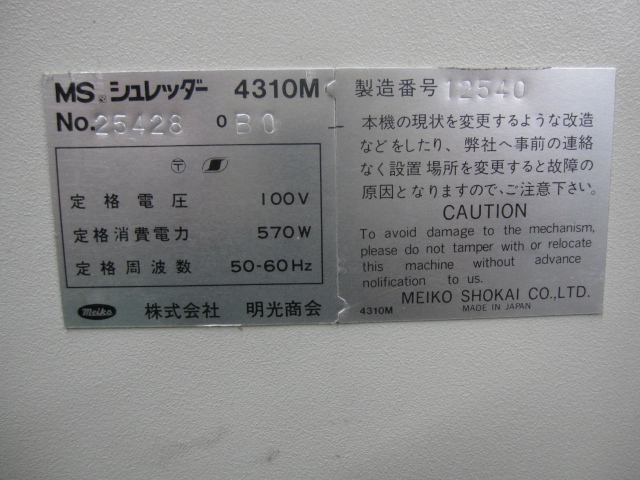 【中古】 MS-4310MU-AT 明光商会 シュレッダー 138385
