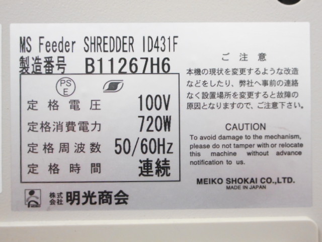 【中古】 MS-ID431F 明光商会 シュレッダー 138407