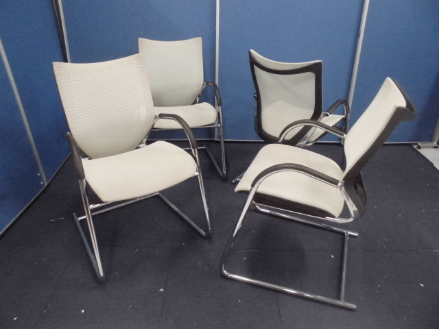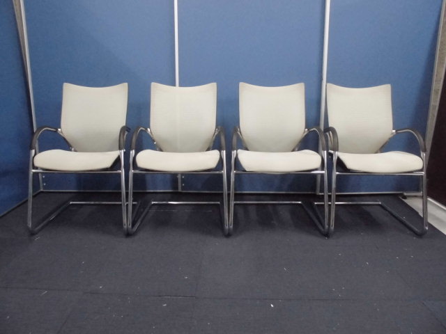 【大人気のバロンシリーズ】ゲストチェア/ミーティングチェア4脚セット|ホワイト【セット商品】- 立川・八王子店