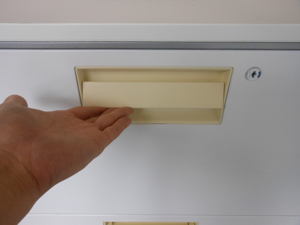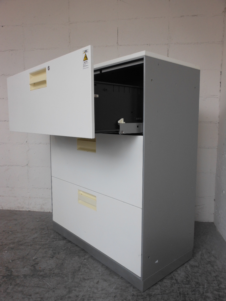 - 多数不具合あり引出の開閉不可、施錠不可、棚板無しといったその書庫の本来の効用を果たすための機能以外の多数が使用不可(例、扉、引出の開閉がしづらいなどがある。 )