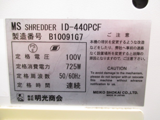【中古】 MS-ID440PCF 明光商会 シュレッダー 138836