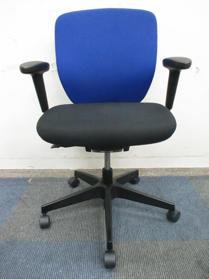 【一人ひとりにマッチする座り心地!ミドルクラスの定番チェア!】■イトーキ(ITOKI)製 プラオ(PRAO)チェア 肘付き ローバック ■固定肘・ランバーサポート付き ■ブルー×ブラックシェル