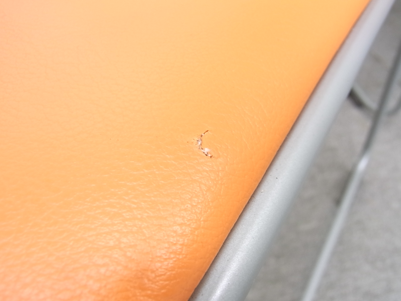 - あり黄ばみ・変色が広い範囲にうっすらある、または濃い黄ばみ・変色が一部ある。(例、座面・背もたれ、脚部等にある。)